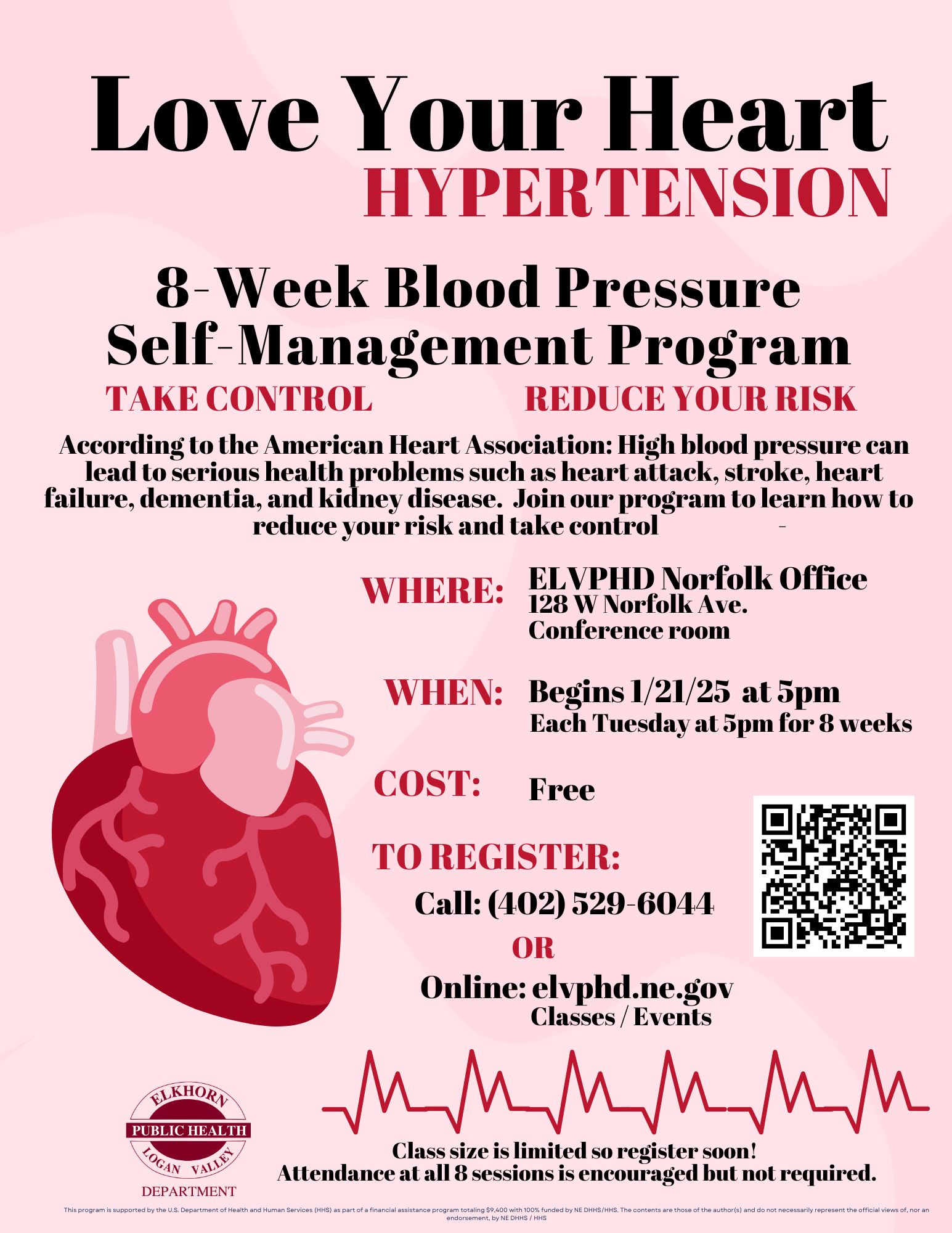 We want you to LOVE YOUR HEART by participating in our heart health education series! Our next Love Your Heart series will take place in Norfolk at our ELVPHD Norfolk office beginning 1/21/25 at 5pm.